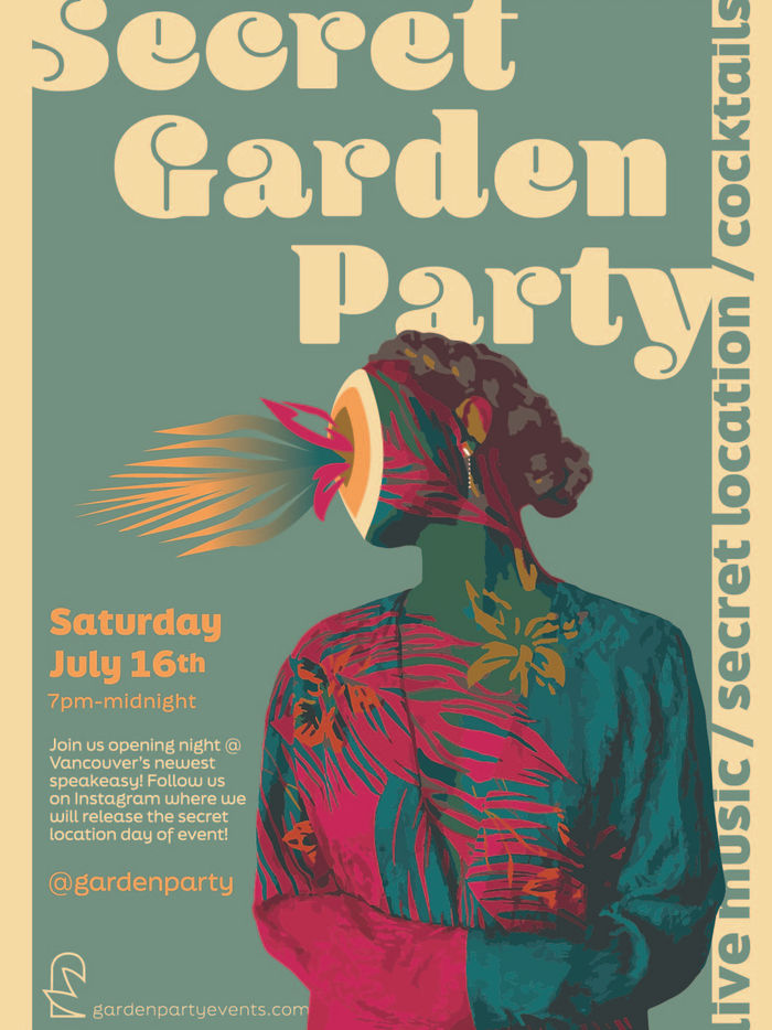 I was inspired by speak easy's and the idea of a secret location. The image is from a previous project where I hand painted the model to match their shirt. The photo was then vectorized and paired with a large typeface to grab the viewers attention.